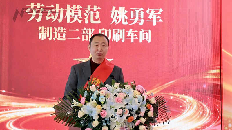 勞動模范、制造二部姚勇軍代表受表彰的先進員工發(fā)言,分享奮斗感悟、傳遞榜樣力量,表示將珍惜榮譽、再接再厲,立足崗位、再創(chuàng)佳績。
