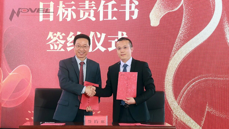 為壓實目標(biāo)責(zé)任、確保任務(wù)落地,潘健總經(jīng)理與子公司總經(jīng)理、總部職能部門負責(zé)人現(xiàn)場簽訂2026年目標(biāo)責(zé)任書,立下 “軍令狀”、吹響 “沖鋒號”。